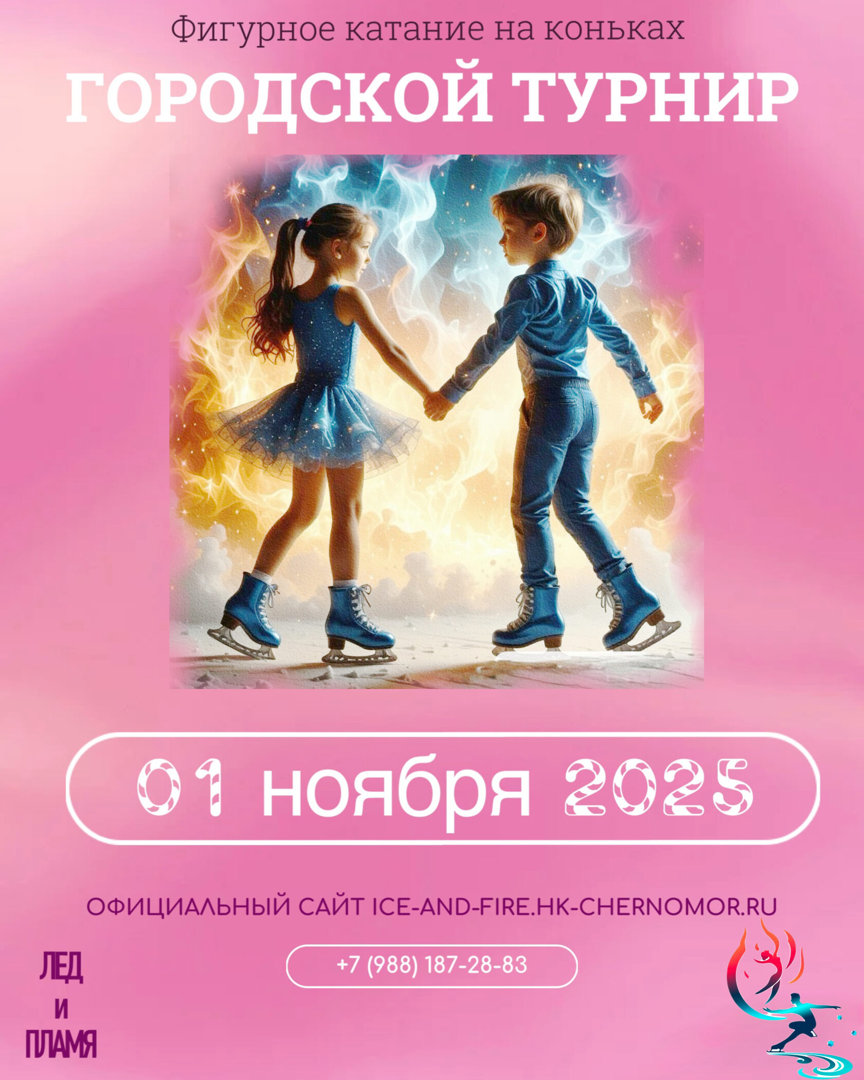 Приглашаем юных фигуристов принять участие в Городском турнире «Лед и пламя», который состоится 1 ноября 2025 года в ледовом дворце «Айсберг».